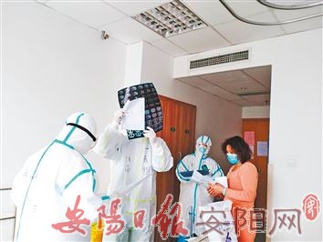 查房前,首先得戴上一层层的防护用具:护目镜、口罩、手套、鞋套、隔离衣等,再从清洁区经过一道道关卡,进入污染区,开始查看每一个患者,询问病情,查看各种化验单、检查单,了解患者病情变化,对比肺部CT是否好转,体温是否正常,咳嗽咳痰是否减轻。由于大多数患者是没有陪护家属,又在一个相对密闭的空间里,时间长了难免会有焦虑的情况发生,蒋翔在查房的过程中除了与患者沟通病情之外,更多的是安慰、鼓舞患者,为他们打气,给予他们战胜病魔的信心。