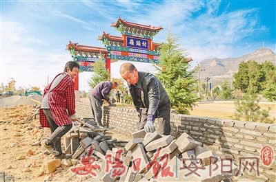 11月4日6时左右,清晨的第一缕阳光刚刚照到龙安区马家乡岭头村村口新建的牌楼上, 68岁的王刘生就来到了村口,为新修的道路砌护墙。