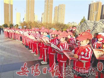 为弘扬中华优秀传统文化,发挥省级文明校园的辐射带动作用,11月7日上午7时,市钢城小学师生近180人来到丹枫园广场,开展了周六广场诵读《论语》活动。整齐有序的队伍,高亢朗朗的读书声,引来众多晨练的居民驻足观看,成了丹枫园广场一道亮丽的风景,为古城安阳增添了浓厚的传统文化气息。