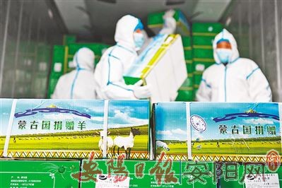 11月12日上午,首批加工完毕的1.2万只蒙古国捐赠羊完成装车,随即从内蒙古自治区二连浩特市启程,前往湖北省武汉市。