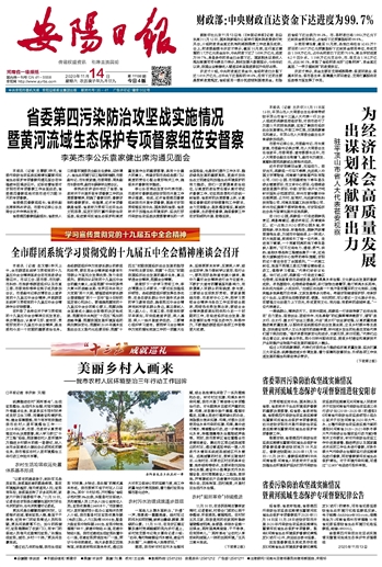 省委第四污染防治攻坚战实施情况暨黄河流域生态保护专项督察组进驻安阳市