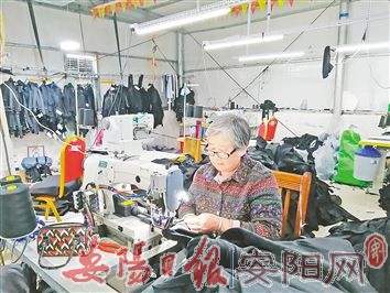 牛屯镇何庄村村民位玉香老人今年已经68岁了,她每天在村里的服装厂打工,月工资3000余元。她乐呵呵地说:“在这儿干活儿,既能挣钱又开心,感觉越活越年轻。”