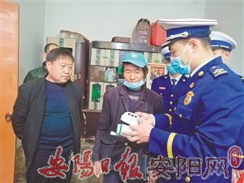 近日,安阳县消防救援大队联合民政、团委等单位,深入脱贫的贫困建档户、孤寡老人和残障群众等弱势群体家中,开展赠送消防器材、传授消防知识活动,现场向群众讲解消防器材的使用方法和日常消防安全知识。(本报记者 王 倩 摄)