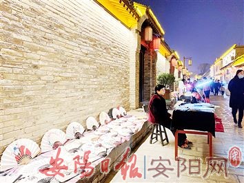 11月14日夜晚,华灯初上,记者漫步在仓巷街,顿时被一面墙给吸引住了:一把把风格迥异的扇面画一字排开,一群人正围着一位老年妇女。只见她细心描绘扇面,一笔一画,尤为专注,一根画笔一瓶墨,数盘颜料一把扇,就是这些简单的工具,让一把平淡无奇的扇子在她手里变出了花样,成为街头一道亮丽的风景。