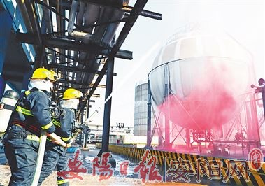 图为当天该集团在九天公司甲胺装置现场开展消防演练。(王晓军 摄)