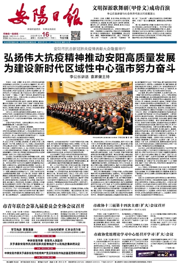 弘扬伟大抗疫精神推动安阳高质量发展 为建设新时代区域性中心强市努力奋斗