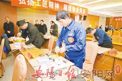 12月15日,林州市总工会与林州市物业服务行业协会联合举办物业服务行业第二届职业技能竞赛,近百名物业技术人员参赛。图为技术人员进行电路技术竞赛。(常江波 摄)