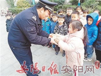 为了让幼儿了解中华民族传统节日内涵,弘扬民族文化,12月21日,文峰区尚慧启华幼儿园围绕“快乐包饺子 温暖过冬至”这一主题开展了一系列活动。小朋友们不仅了解了冬至的由来、习俗,还体验了自己动手包饺子的乐趣。老师及幼儿组成的爱心小队,将一份份热腾腾的饺子打包好,送到幼儿园周边在寒风中工作的人们手中,让大家一起感受冬日的爱心与温暖。图为中班小朋友为物业工作人员送上热气腾腾的饺子。(宋丽宣 摄)
