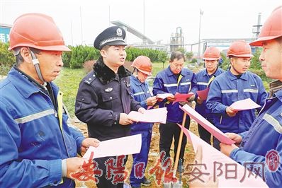 为进一步增强辖区群众的电信诈骗防范意识,12月21日,安阳县公安局民警深入辖区厂矿企业,向群众宣传冬季安防常识、辖区典型电信诈骗案例,讲解防范电信诈骗知识。(本报记者 王 倩 摄)