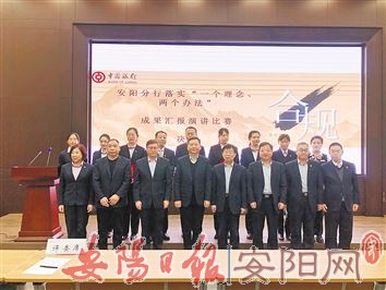 本报讯 “守规矩、讲诚信、担责任、爱中行,让我们紧紧围绕‘12字方针’,为助力安阳经济建设写下浓墨重彩的一笔,为实现中行安阳分行高质量发展迈出坚实的一步。”近日,随着阵阵热烈的掌声,中行安阳分行举办的“一个理念、两个办法”主题演讲比赛成功落下帷幕。