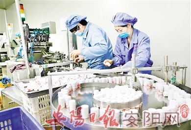 1月12日上午,上海玉瑞生物科技(安阳)药业有限公司口服固体制剂车间内,几条生产线马力全开。工人忙着为瓶装盐酸安他唑啉片贴标、装盒、打包。据介绍,去年该公司销售收入1.08亿元,今年计划销售收入1.2亿元。目前,该公司职工全力投入生产,争取一季度实现生产、销售开门红。