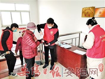 寒假到来,大学生志愿者以多种方式加入所在社区疫情防控工作。图为1月20日,文峰区头二三道街街道渠口街社区辖区大学生志愿者在社区换届会场外全程服务,为群众测量体温、消毒、登记。(张洁 摄)