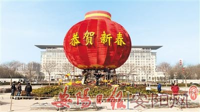 日前,“恭贺新春 欢度春节”8个大字已经安装到位,在阳光下熠熠生辉,为城市增添了亮丽的色彩。(刘军芳 摄)