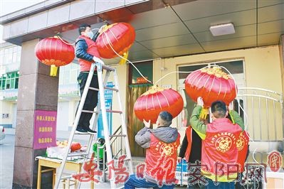 1月28日上午,市亮化照明事务中心组织志愿者来到安阳市军队离退休干部第二休养所(以下简称干休所),悬挂灯笼和彩条灯。在大家的密切配合下,一个个带着祝福的红灯笼被挂了起来,整个干休所充满了节日氛围。“大红灯笼挂起来,年味就来了!”住在干休所的李大爷开心地说。