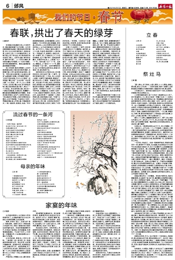 一副红红的春联传承了中国几千年的文明,蕴含着千家万户对美好明天的期盼。红红火火新春联,开门见红纳千祥。春天,在红红的春联里不知不觉地悄然拱出了绿芽,呈现了一片无限的生机。