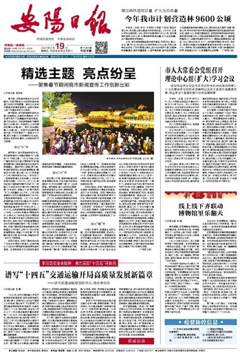 春节期间,我市新闻媒体紧扣主题,加强策划,全媒体协调联动,对牛年春节进行了浓墨重彩的宣传报道。据不完全统计,市级新闻媒体刊播报道600余篇(条),在省级以上主流媒体发稿40余篇(条)。其中,在央媒发稿10余篇(条)。这些守正创新的新闻产品,为市民提供了一道道文化大餐,极大丰富了人们的精神文化生活,营造出安阳欢乐喜庆、文明祥和的节日氛围。