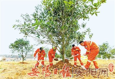 2月18日,森林消防队队员在贵州省毕节市黔西县绿化乡大海子村参加义务植树。