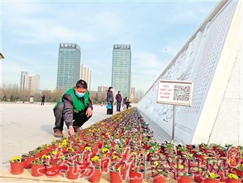 为增添节日气氛,给广大市民群众提供更好的休闲环境,春节前,市游园管理站就更换了市民文化广场“商颂”主题浮雕墙前的盆栽鲜花,更换三色堇共计5000盆,并在节日期间进行管护。