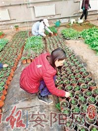 图为2月19日,市农业科学院科研人员在永和示范基地对引种的玛格丽特进行摘心打顶。(许蕊 摄)