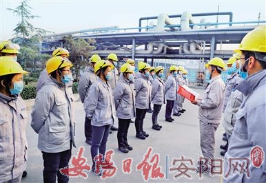 图为2月1日,该集团动力厂负责人利用下午交班时间对员工进行宣传引导教育。(王晓军/文 王金霞/摄)