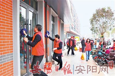 图为该市干部群众在瓦窑街打扫卫生。