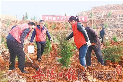 3月8日,姚村镇组织200余名干部在军营村义务植树600余棵,掀起了春季绿化工作的热潮。 (李德贤 摄)