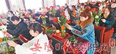 3月11日,文峰区紫薇大道街道举办了一场“情暖春天,花满人间”插花活动。活动中,插花老师为居民传授基本的插花技巧和颜色搭配。经过一个多小时的创作,一件件美丽的作品展现在大家眼前。此次活动不仅陶冶了居民的情操,也让居民了解了插花的基础知识。(本报记者 周俊英 摄)