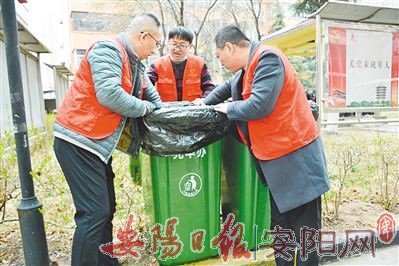 为解决垃圾桶破损问题,消除破垃圾桶流臭水现象,3月11日,光华路街道兴泰苑社区工作人员对垃圾桶现状进行排查,对辖区内老旧小区的垃圾桶进行了全面更换,并将辖区内垃圾进行袋装化,让社区居民的生活环境更加清洁。 (本报记者 刘 斐 摄)