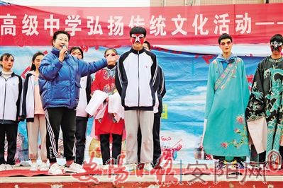 3月18日,殷都区第一高级中学邀请国家级非物质文化遗产淮调传承人孙国际等,举办了以“戏曲进校园、梨韵伴书香”为主题的校园活动。活动中,孙国际、王秀娟、靳庆平等为学生带来了精彩的淮调表演《殷蛟采药》《吕布戏貂蝉》等选段,博得了在场师生的阵阵掌声。表演结束后,王玉霞老师与学生进行了互动,学生体验了戏曲装扮,学习了表演动作,进一步体会到戏曲表演的乐趣。(本报记者 马昊宇 摄)