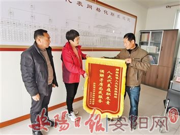 “人大代表多次上门调解纠纷,帮我要回了工程款。我真是太感谢了!”3月18日,韩陵镇王宁后街村村民梁企富来到镇人大代表联络站,送上写有“人大代表履职尽责 调解矛盾为民服务”的锦旗表达感激之情。
