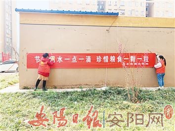 3月22日至28日是第三十四届“中国水周”。洹北街道围绕“深入贯彻新发展理念,推进水资源集约安全利用”宣传主题,组织志愿者开展了以“珍惜水资源、人水和谐”为主题的活动。图为3月24日,洹北街道志愿者在社区悬挂横幅,营造节水氛围。(付盖华 摄)