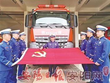 近日,安阳县消防救援大队组织全体指战员开展党史学习教育,深刻了解中国共产党党史,重温作为国家应急救援主力军和国家队的初心使命,忠实践行消防救援队伍“对党忠诚、纪律严明、赴汤蹈火、竭诚为民”的铮铮誓言。 (本报记者 王晓楠 摄)