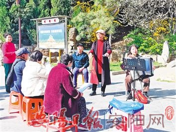 在洹园有一支自发组成的“老年合唱团”,他们每天坚持唱红歌,歌颂祖国,歌唱新生活。老人们放声高歌,每个人脸上都洋溢着灿烂的笑容。