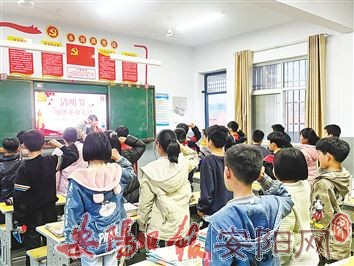 清明节前夕,滑县留固镇第三初级中学(小学部)组织全体小学生开展了“缅怀革命先烈,弘扬民族精神”主题班会活动,教育广大学生缅怀革命先烈,感受民族精神,树立远大理想。(胡锦江 摄)