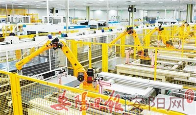 隆基股份西安组件工厂太阳能光伏组件产品生产现场。