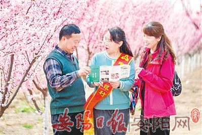 图为人行安阳县支行工作人员(右二)在永和镇裴庄村向农民朋友宣传爱护人民币常识。
