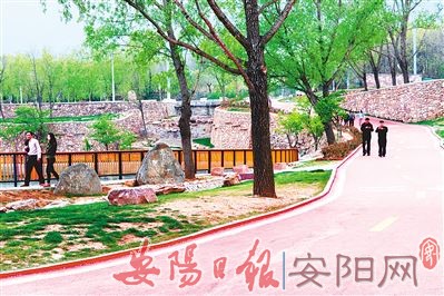 4月初,位于红旗渠大道西端的渠畔游园建成,对外开放。这是黄华镇2021年重点项目,此游园的建成开放,是黄华镇积极响应林州市委号召,奋勇争先、真抓实干的工作成效,也是黄华镇向建党100周年献上的一份厚重礼物。图为4月10日,市民在游园里游玩。 (陈煜杭 摄)
