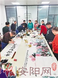 3月28日,安阳市金土房地产评估有限公司联合市老年书法研究院举行书法联谊活动。大家兴致盎然、挥毫泼墨,活动现场欢声笑语、一团喜气。 (李国华 摄)
