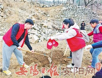 4月6日,中行安阳分行团委组织青年党员、团员到林州市原康镇石家庄村开展“弘扬雷锋精神,献礼建党百年”义务植树活动。据了解,此次活动共栽种山楂、花椒树苗1000余株。 (本报记者 陈振江 摄)