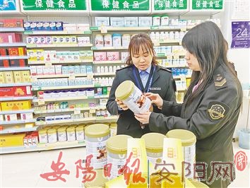 4月16日,区市场监管局对辖区内的保健食品经营企业、大型超市及保健食品专卖店开展了专项检查,重点检查保健食品经营单位是否取得《食品经营许可证》、是否按要求建立了供应商档案、保健食品进货渠道是否规范合法、是否严格落实索证索票和进货查验制度、标签和说明书标识的内容是否符合规定要求等。图为执法人员对红旗路路北某药房进行检查。(邢文皓 摄)