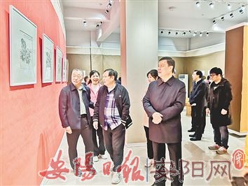 4月22日上午,“青山不老可重来——李昕从教40年书画展”在安阳师范学院美术学院开幕。李昕现为市美术家协会副主席,先后担任安阳师范学院美术学院教研室副主任、国画系副主任,在中国画教学上有着丰富的经验,取得了丰硕成果。本次展出的100余幅书画作品是李昕近年的精品力作。图为市民在观看书画作品。