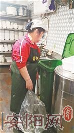 当天上午,在富泉街,河南治力环保科技有限公司的收运工查希成像往常一样开始收集沿街饭店的餐厨垃圾。他把饭店里的垃圾桶运出,在随身携带的安阳市餐厨垃圾收集运输车辆日报表上填写产生垃圾的饭店名称、产生数量以及收运日期、时间等。记者翻看了这本日报表,仅5月7日一天,查希成就收运了120多家饭店的餐厨垃圾,每家饭店产生的垃圾量不等,多的50多千克,少的30多千克。在富泉街与兴泰路交叉口附近的一家火锅店内,正在备菜的一位工作人员告诉记者:“有时候一天才有半桶垃圾,量大的时候就一天一清运,量少的话两天清一次。”查希成说:“饭店垃圾的产生量从周一到周末呈现递增的过程,不管量大量小都要运完。”