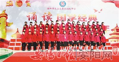| 5月8日下午,龙安区第二初级中学开展了以“诵读国学经典、致敬光辉百年”为主题的诵读展示活动。(尚建胜 摄) |