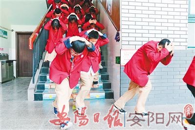 | 昨天,市盘庚小学举行了以“防范化解灾害风险、筑牢安全发展基础”为主题的应急逃生疏散演练。(本报记者 尚丽娟 摄) |