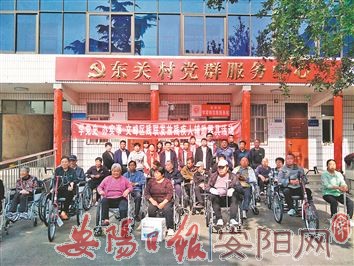 5月11日上午,区残联工作人员先后为东关街道东关村社区的23名残疾人免费发放轮椅、手摇三轮车、手杖、听书机等辅助器具。
