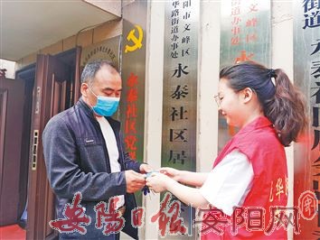 5月16日是第三十一次全国助残日。在深入困难残疾人家庭走访过程中,文峰区光华路街道永泰社区工作人员摸实情、送政策、送信息、送温暖,了解残疾人的需求,尽可能帮助他们解决在生活、工作中遇到的困难和问题。图为5月12日,社区工作人员为辖区困难残疾人家庭送上米、面、油领取卡。(李静 摄)