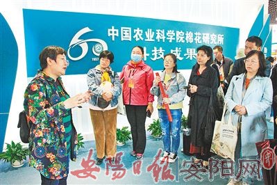 5月16日,北关区作家协会组织50余名作家、诗人走进中国农业科学院棉花研究所,开展“大写中国棉”采风诵读活动。 活动中,作家、诗人认真观看了纪录片,参观了系列科普展,真切感受到中棉所一代代科研人员刻苦钻研、认真严谨的工作态度和为棉花事业发展艰苦奋斗、甘于奉献的爱国情怀。图为《中国棉》一书的作者周艳丽(左一)在介绍中国棉花的历史。(牛李平 摄)