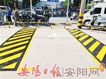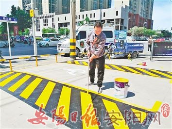 5月17日,在殷都区殷三路与钢花路交叉口的缔盛广场停车场内,全市首个无障碍停车位即将完工。“这个车位是无障碍停车位,比一般车位面积要大,边上有黄黑色的斜线条,非常显眼也很好找。” 殷都区城管局副局长牛顿告诉记者,按照无障碍停车位施画和无障碍标识喷涂工作要求,他们与殷都区相台街道办事处工作人员加班加点,赶制出试点无障碍停车位。相关单位验收后,这个车位就可以使用了。