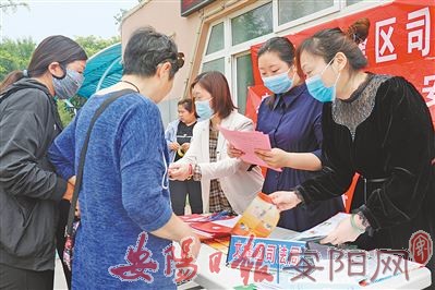 5月13日上午,文峰区司法局在易园西门开展法治宣传进社区活动。本次活动共发放各类法律宣传资料500余份,指导群众填写调查问卷200余份,解答群众咨询20余人次,让法治观念深入人心,得到群众一致好评。 (本报记者 王晓楠 摄)