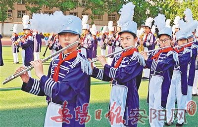 5月17日下午,殷都区“高举队旗跟党走、争做新时代好队员”庆祝建党100周年少先队鼓乐队比赛在安阳外国语小学举行。参加比赛的人员有2100余人,经过层层选拔,有20支鼓乐队进入决赛,最终决出一等奖9名、二等奖11名。图为参赛队伍正在表演。(李成林 摄)